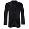 Black 2 button single breasted dress jacket; black and silver contrasting sequin collar; double vented and fully lined; 52% cotton, 45% polyester, 3% spandex. Jacket can be worn on its own or matched with Dress trousers or Black cotton jeans; White cotton dress shirt with emerald cut crystal buttons. Complete the look with a Black satin bow tie or Black satin long necktie.