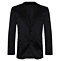 Black 2 button single breasted dress jacket; hand-stitched black crystal studs; double vented and fully lined; 52% cotton, 45% polyester, 3% spandex. Jacket can be worn on its own or matched with Black cotton jean style trousers with black crystal trim on front and back pockets or Black cotton jeans; Black cotton t-shirt or Black cotton short sleeve shirt with contrasting white collar and cuffs and black Swarovski buttons.