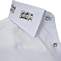 White cotton dress shirt with emerald cut Swarovski buttons; 100% cotton. Shirt can be worn on its own or matched with a range of jackets, trousers and jeans from the collection.